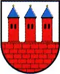 Herb przedstawia w polu srebrnym mury miejskie czerwone z otwartą bramą, i trzema wieżami krytymi daszkiem czarnym, z których najwyższa (środkowa) zwieńczona krzyżykiem.