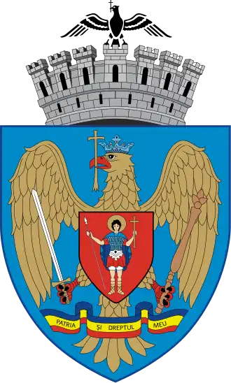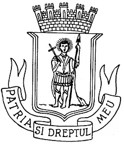 Herb ten utrzymał się do 1970 r., kiedy dekretem prezydenta Nicolae Ceaușescu został zastąpiony przez nowy, który miał oddawać najbardziej charakterystyczne elementy tradycji historycznej, politycznej, ekonomicznej i społecznej państwa[3]. Przedstawiał on dwupolową tarczę dzieloną w poziom. Na górnym niebieskim polu znajdował się biały wizerunek gmachu Komunistyczne Partii Rumunii. Dolne pole, koloru czerwonego koło zębate i otwartą księgę z łacińskim mottem Civitas Nostra (Nasze Miasto). Obie części łączy mała tarcza herbowa, w której dominuje godło Rumunii[4], a w tle znajdują się flaga rumuńska i radziecka.