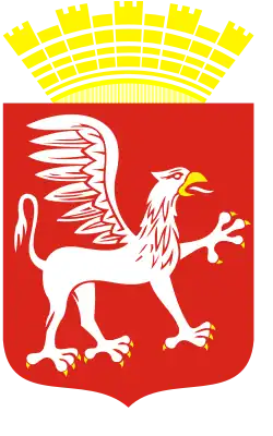 Herb przedstawia wspiętego gryfa, zwróconego w prawą stronę, w kolorze białym (srebrnym) ze złotym dziobem, językiem, szponami i pazurami w polu czerwonym. Jest to najstarszy historyczny wizerunek herbu z XVI w. W XVII-XVIII w. został on zastąpiony herbem z rakiem, położonym w polu usianym dziesięcioma gwiazdami[2].