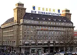Herb Essen – zatwierdzony w 1886 nazywany jest herbem przymierza (niem. Allianzwappen) należy do specyficznych przedstawień heraldycznych. Składa się z dwóch oddzielnych tarcz ułożonych w ukłonie heraldycznym. Jednakże korona nie odnosi się bezpośrednio do miasta, lecz do księstwa kościelnego podległego opactwu zarządzanym przez mniszki, które tytułowały się księżnymi aż do mediatyzacji w XIX stuleciu.
