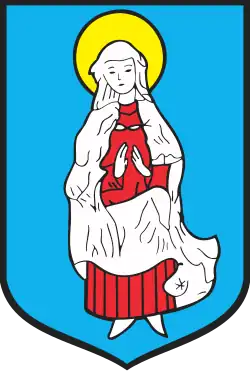 W 1959 prof. Marian Gumowski zaprojektował herb nawiązujący do pierwotnego[3]. Rok później, w książce Herby miast polskich przedstawił inny wzór: Matka Boska z dzieciątkiem Jezus[3]. Bardzo podobny do pierwszego projektu Gumowskiego był herb zamieszczony w Miastach polskich w tysiącleciu i ten właśnie wzór przyjęła w 1982 Miejska Rada Narodowa[3]. Przedstawiał on w błękitnej tarczy herbowej postać Matki Boskiej w czerwonej sukni i białym płaszczu, ze złotym nimbem.