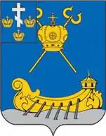 - ↑ Opis herbu z urzędowego Zbioru praw Rosyjskiego Imperium: На щите, который разделён от верхней середины до нижних углов, в чёрном поле, над серебрянной кадильницей изображён золотой крест, окружённый лучами, а по сторонам: в голубом поле Архиерейская митра и в золотом поле Архиерейский посох.