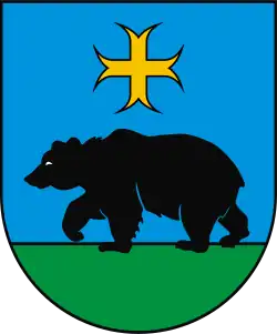 Pierwotny herb miasta stanowił czarny niedźwiedź, kroczący w prawo po zielonej murawie, na tle błękitnego nieba, a nad nim znajdował się złoty krzyż kawaleryjski. Został on ustanowiony prawdopodobnie w XV w. przez któregoś z książąt mazowieckich. Obecna wersja herbu, kilkakrotnie poprawiana, pochodzi z połowy XVIII w.