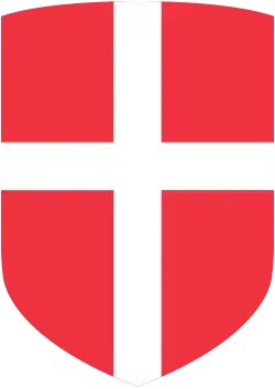 Przedstawia trzy błękitne, koronowane złotymi koronami, lwy (lamparty), zwrócone w stronę prawą (heraldycznie), które są umieszczone w słup, jeden nad drugim na tarczy koloru złotego. Nad tarczą znajduje się koronowany srebrny hełm turniejowy, z labrami złoto-błękitnymi. W klejnocie postać kobiety w czerwonej sukni i koronie ze skrzyżowanymi rękami. Jest to duńska królowa Małgorzata.