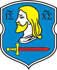 W tarczy herbowej hiszpańskiej w polu błękitnym profil Jezusa Zbawiciela. Powyżej z prawej litery złote „ΙΣ”, z lewej „ΧΣ”, niżej z prawej i lewej „C”. Poniżej profilu Jezusa Zbawiciela skierowany w lewo miecz srebrny z rękojeścią złotą. Za tarczą kartusz barokowy czerwony, zwieńczony cherubinem z rozpostartymi skrzydłami, podtrzymywany przez stojące na wstędze zielonej anioły ze wstęgami błękitnymi w rękach. Pod nim dwie gałązki laurowe zielone.