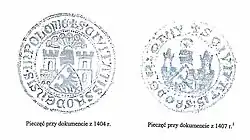 - ↑ Marian Gumowski: Herby miast polskich. Warszawa: Arkady, 1960, s. 320.