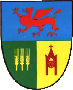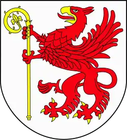 Herb przedstawia na tarczy w polu czerwonym lisa srebrnego, wspiętego, trzymającego pastorał złoty z welonem srebrnym[1].