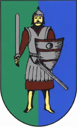 Herb przedstawia na tarczy w polu czerwonym półpostać rycerza srebrnego z mieczem srebrnym w prawej ręce i tarczą w lewej ręce, na tarczy z okuciem srebrnym w polu czerwonym rybogryf srebrny[1].