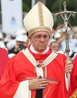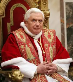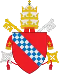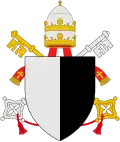 - ↑ Carol Glatz: Pope drops papal crown from coat of arms, adds miter, pallium. catholicnews.com, 2005-04-27. (ang.).