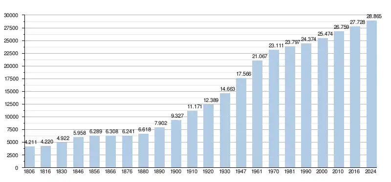 - Źródła: NIS, od 1806 do 1981= według spisu; od 1990 liczba ludności w dniu 1 stycznia