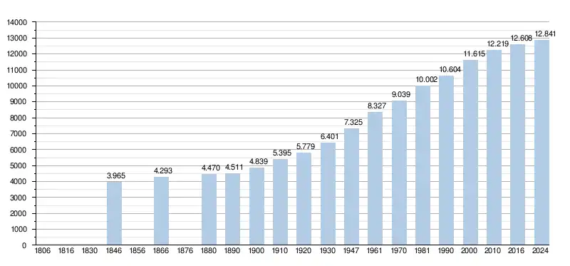 - Źródła:NIS, :od 1806 do 1981= według spisu; od 1990 liczba ludności w dniu 1 stycznia