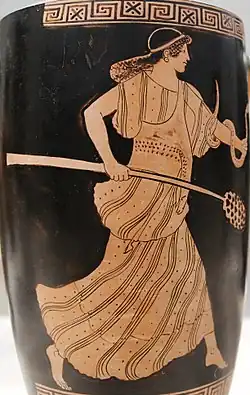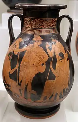 - ↑ Nr inw. S 8176; zakupiona w Neapolu przez Izabelę Lubomirską w r. 1785/86 (Witold Dobrowolski: Wazy greckie Stanisława Kostki Potockiego. Próba rekonstrukcji kolekcji. Warszawa: Muzeum Pałac w Wilanowie, 2007, s. 33). Temat ten w innej wersji powtarza np. jego późniejsza amfora szyjowa z uniwersyteckiego muzeum im. Martina von Wagnera w Würzburgu (nr L 504).