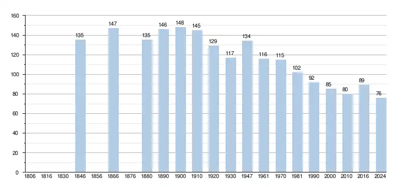 - Źródła:NIS, :od 1806 do 1981= według spisu; od 1990 liczba ludności w dniu 1 stycznia