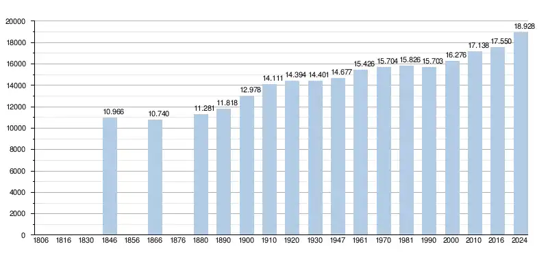 - Źródła:NIS, :od 1806 do 1981= według spisu; od 1990 liczba ludności w dniu 1 stycznia
