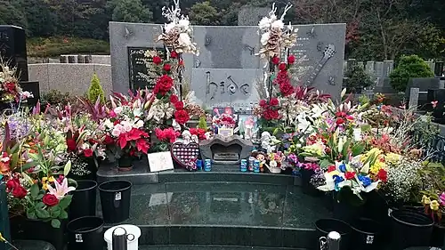 Został pochowany na cmentarzu w mieście Miura w prefekturze Kanagawa, gdzie odbyło się buddyjskie nabożeństwo żałobne. Około 50 000 osób wzięło udział w jego pogrzebie 7 maja w świątyni Tsukiji Hongan-ji, gdzie 56 osób zostało hospitalizowanych, a 197 otrzymało pierwszą pomoc medyczną z powodu wyczerpania emocjonalnego i upału[16][18]. W ciągu tygodnia pięć japońskich nastolatek próbowało popełnić naśladowcze samobójstwo, z których trzem się to udało[7].