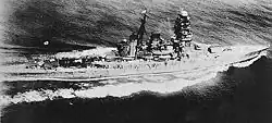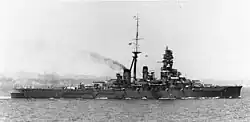 ![]() „Hiei” jako okręt szkolny w 1933 (widoczne wysokie wolne burty na skutek zmniejszenia zanurzenia oraz miejsce po zdjętym pasie pancernym) | |