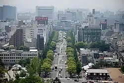 Ōtemae-dōri, główna ulica Himeji, w głębi zamek | |||||||