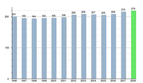 Według danych z dnia 31 grudnia 2012, wieś zamieszkiwało 237 osób, w tym 114 kobiet i 123 mężczyzn[6].