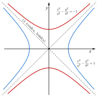 nazywa się hiperbolą sprzężoną do hiperboli wyjściowej, o równaniu podanym wyżej[1]. Hiperbole wzajemnie sprzężona mają wspólne asymptoty o równaniach podanych wyżej.