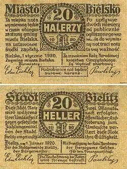 Ostatecznie jednak do plebiscytu nie doszło, a podziału Śląska Cieszyńskiego dokonała 28 lipca 1920 Rada Ambasadorów[216]. Bielsko, jak cała wschodnia część regionu, przypadło Polsce i weszło następnie w skład autonomicznego województwa śląskiego jako powiat miejski[217]. Biała tymczasem stała się częścią województwa krakowskiego[218].