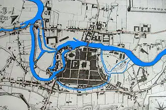 - Plan Linderta z 1800 roku nałożony na współczesne zdjęcie satelitarne