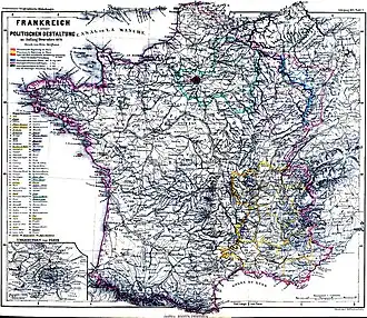 Po pierwszych klęskach w Alzacji i Lotaryngii w dniach 8 sierpnia – 14 sierpnia trzon armii francuskiej z marszałkiem A. Bazainem znalazł się w oblężonym Metzu. Napoleon III, idący mu na odsiecz z armią marszałka E. Mac-Mahona, został odepchnięty i zamknął się w Sedanie; po krótkiej walce 2 września twierdza skapitulowała i cesarz dostał się do niewoli. Niepowodzenia wojenne wywołały zamieszki w miastach m.in. Lyon, Marsylia, Bordeaux w wyniku rewolucji 4 listopada w Paryżu (rewolucja wrześniowa 1870) Napoleon III został pozbawiony tronu, proklamowano III Republikę Francuską, a powołany rząd obrony narodowej zapowiedział kontynuowanie walki. W obawie przed rewolucją ograniczały jednak francuskie działanie zbrojne, a tymczasem wojska pruskie dotarły do Paryża i od 19 września 1870 oblegały miasto. Zawieszenie broni 28 stycznia 1871 umożliwiło przeprowadzenie wyborów do Zgromadzenia Narodowego, które powierzyło władzę wykonawczą A. Thiersowi i 1 III zaakceptowało postanowienia pokojowe podyktowane Francji przez Ottona von Bismarcka, m.in. utratę Alzacji i Lotaryngii oraz odszkodowanie wojenne w wysokości 5 miliardów franków (pokój frankfurcki, zawarty 10 maja 1871). Odpowiedzią na warunki kapitulacji była rewolta Paryża, zwana komuną paryską 1871 w przededniu jej wybuchu rząd opuścił stolicę, przenosząc się do Wersalu, gdzie znalazło się również Zgromadzenie Narodowe. Komuna została krwawo stłumiona 28 maja 1871[15], jej uczestnicy represjonowani straceni lub deportowani, a sam Paryż czasowo przestał pełnić funkcję stolicy.