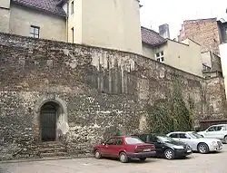 Przed 1431 rokiem powstały mury miejskie, zbudowane częściowo z łamanego kamienia, a częściowo z cegły w układzie polskim. Opatrzone były dwiema bramami: Białą (Bytomską) od południowego wschodu i Czarną (Raciborską) od północnego zachodu[1].
