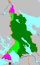 3. Karelo-Fińska SRR w latach 1945–1956 i Karelska ASRR (1956–1991) - kolory ciemnozielony i jasnozielony (kolor różowy - obszary wcielone do Rosyjskiej FSRR po II wojnie światowej)