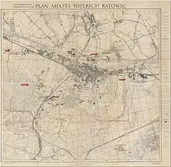 - ↑ Rada Miejska w Katowicach, Uchwała Nr XXVI/148/91 Rady Miejskiej w Katowicach z dnia 16 września 1991 r. w sprawie: utworzenia na terenie miasta Katowice 22 pomocniczych jednostek samorządowych i podziału miasta na 22 obszary ich działania [online], bip.katowice.eu, 16 września 1991 (pol.).