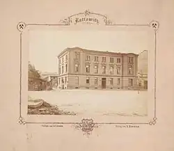 Szybka urbanizacja i rozbudowa linii kolejowych sprzyjała rozwojowi Katowic[35]. W 1828 roku wieś zamieszkiwało 675 osób, a w 1861 roku Katowice miały już 4750 mieszkańców[36]. Przybywali zarówno mieszkańcy okolicznych osad, którzy stanowili około 50% mieszkańców Katowic, jak i też niemieccy urzędnicy z zarządu dóbr wincklerowskich. Osiedlali się też przedstawiciele klas średnich, kupcy i rzemieślnicy, przeważnie Niemcy i Żydzi[35]. Pierwszy hotel w Katowicach działał od 1848 roku i był to hotel Welta, który znajdował się na rogu współczesnego Rynku i ulicy Warszawskiej, a wraz ze wzrostem liczy ludności w 1855 roku rozbudowano budynek szkoły ludowej (niem. Volksschule)[36].