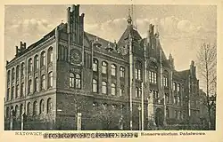 Pod koniec XIX wieku w mieście funkcjonowało 5 szkół ludowych, szkoła dokształcająca i szkoła średnia[59]. W 1864 roku powstała pierwsza szkoła prywatna dla dziewcząt z siedzibą przy obecnej ulicy Młyńskiej. W 1875 roku stała się ona placówką miejską, a w 1901 roku przeniesiono ją do budynku przy ulicy 3 Maja i przekształcono w liceum. Wcześniej, bo 9 października 1871 roku otwarto w mieście gimnazjum miejskie, dla którego w latach 1872–1873 wzniesiono budynek przy ulicy 3 Maja, a w latach 1898–1900 roku nowy, neorenesansowy gmach przy ulicy A. Mickiewicza[60].
