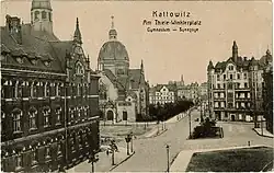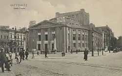 W Katowicach w drugiej połowie XIX i na początku XX wieku nastąpiła intensyfikacja życia kulturalnego. W 1883 roku powstał utworzony przez Oskara Meistera chór mieszany – Towarzystwo Śpiewacze[61]. Jego koncerty odbywały się w wybudowanej w latach 70. XIX wieku przy ulicy Sokolskiej Reichshalle – późniejszej siedziby Filharmonii Śląskiej im. H.M. Góreckiego. W mieście tworzyli artyści malarze, w tym m.in. Max Odoy, który w 1908 roku miał w Katowicach pierwszą indywidualną wystawę swoich prac i studiów[62]. W październiku 1907 roku działalność zainaugurował Teatr Miejski – późniejszy Teatr Śląski im. S. Wyspiańskiego w Katowicach, wystawiając premierę sztuki Wilhelm Tell Friedricha Schillera. W pierwszych latach XX wieku w Katowicach powstały pierwsze kina, z których najstarszym było prawdopodobnie „Coloseum”, mieszczące się przy ulicy 3 Maja. Największym dziennikiem wydawanym przed I wojną światową w Katowicach był Kattowitzer Zeitung[59].