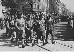 4 września do Katowic wkroczyły pierwsze oddziały niemieckiej 239 Dywizji Piechoty, a mimo wycofania regularnych oddziałów Wojska Polskiego czoła Niemcom stawiły grupy byłych powstańców śląskich i harcerzy (upamiętnia ich pomnik Harcerzy Września na placu Obrońców Katowic[117]). Wkraczający Niemcy natknęli się na opór w rejonie parku T. Kościuszki, a ogień prowadzono m.in. z wieży spadochronowej. Epizod ten urósł do rangi symbolu wrześniowej obrony Katowic. Walki trwały m.in. w Domu Powstańca Śląskiego, a polscy obrońcy swoje stanowiska mieli też m.in. na dachu gmachu Teatru Polskiego, w wieży kościoła ewangelickiego czy w budynku policji przy ulicy J. Kilińskiego 9. Jeszcze tego samego dnia, około godziny 11:00 niemieckie oddziały dotarły na Rynek, witane entuzjastycznie przez przedstawicieli społeczności niemieckiej[115]. Natychmiast po wkroczeniu do centrum Katowic Niemcy rozpoczęli represje wobec obrońców, byłych powstańców śląskich i młodzieży. Rozpoczęły się rozstrzeliwania, a jako pierwsi zginęli m.in. Nikodem Renc wraz z synem Józefem, Franciszek Feige, Konstanty Woźniczka, jeńcy z Domu Powstańca Śląskiego i harcerze – łącznie około 80 osób[118]. Egzekucje odbyły się m.in. w podwórku nieistniejących współcześnie kamienic przy Rynku i w Lasach Panewnickich[116]. 8 września żołnierze niemieccy spalili Synagogę Wielką przy ulicy A. Mickiewicza[119].