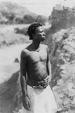 Najstarsze ślady człowieka na Madagaskarze pochodzą z epoki żelaza. W I wieku przybyła tu ludność pochodzenia malajsko-polinezyjskiego. Przez kolejne stulecia miało miejsce kilka faz zaludnienia wyspy. Nierówne odstępy czasu, w jakim przybywali osadnicy, przyczyniły się do zróżnicowania etnicznego mieszkańców. Przed przybyciem Europejczyków główną siłą gospodarczą Madagaskaru był handel, realizowany przez osiadłych na północnym wybrzeżu Arabów. W XIV wieku rozpoczęło się zasiedlenie centrum Madagaskaru przez przybyłych z Indonezji przodków Merina, jednej z obecnych grup etnicznych. Od XV wieku nastąpił rozwój handlu niewolnikami.