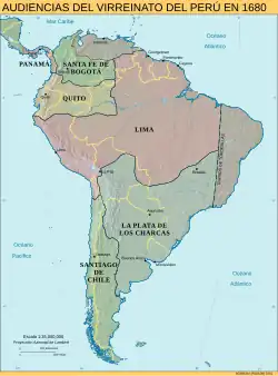 Balboa podzielił terytorium panamskie na prowincje Złota Kastylia i Nowa Andaluzja. W 1538 roku utworzono w Panamie audiencję, która w 1543 roku weszła w skład Wicekrólestwa Peru. W 1717 roku Audiencja Panamy weszła w skład Wicekrólestwa Nowej Granady[3]. Audiencje Panamy włączono do Audiencji w Bogocie w 1750 roku. Jej terytorium zostało podzielono na dwie prowincje – Panamę z około 50 tysiącami mieszkańców i Veraguas z około 30 tysiącami mieszkańców[5]. Pod koniec XVIII wieku obie prowincje zamieszkiwało w sumie 72 tysiące mieszkańców[6].