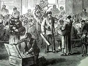 Wejście do teatru na bezpłatne przedstawienie komediowe, mal. Louis-Léopold Boilly (1819)