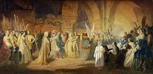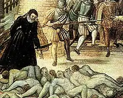 - ↑ Wojny katolików z hugenotami ciągnęły się we Francji od 1562 r. Zobacz Wojny religijne hugenockie.
