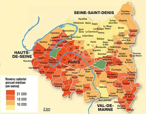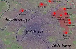 - ↑ Od 1982 r. dzielnicami Paryża zarządzają merowie, którzy urzędują w merostwach, tak jak w samodzielnych miastach. Oprócz tego istnieje też urząd mera samodzielnych merostwo całego Paryża.