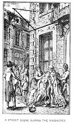 Kolejne niepowodzenia armii francuskiej w wojnie z Prusakami znowu spowodowały zamieszki na ulicach Paryża. Kiedy 2 września 1792 r. Prusacy zdobyli twierdzę w Verdun, doszło do tak zwanych masakr wrześniowych. Pod wpływem agitacji radykalnych klubów i gazet (szczególną rolę odegrał redaktor gazety Przyjaciel ludu kordelier Jean-Paul Marat) w okresie od 3 września do 6 września wzburzony tłum wdzierał się do paryskich więzień i dokonywał samosądów na osadzonych w nich arystokratach i księżach, mordując ponad 1500 więźniów.