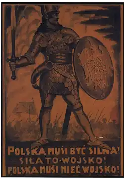 - ↑ Centralny Komitet Narodowy w Warszawie ogłosił odezwę w której pisano: Armię, będącą najczystszym wyrazem woli i zapału narodu, musi powołać Rząd Polski, jedyny uprawniony szafarz krwi polskiej (Odezwa w sprawie wojska).