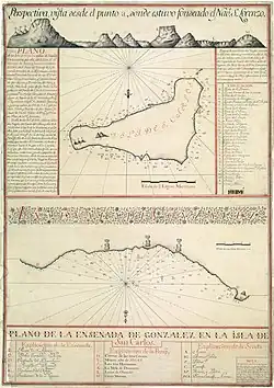 15 listopada 1770 r. wyspę odwiedziły dwa hiszpańskie statki, San Lorenzo oraz Santa Rosalia, wysłane tam przez wicekróla Peru, Manuela de Amata. Wyprawą dowodził Felipe González de Ahedo, który spędził na niej pięć dni, dokonując dokładnych pomiarów wybrzeża. Wyspę nazwano Isla de San Carlos i wzięto w posiadanie w imieniu króla Karola III Hiszpańskiego. Na trzech niewielkich wzgórzach ceremonialnie ustawiono trzy drewniane krzyże. Żeglarze donosili o stojących na wybrzeżu posągach i w dużej mierze nieuprawnej ziemi[5].