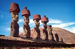O historii wyspy sprzed pierwszej wizyty Europejczyków wiadomo bardzo niewiele. Według podań spisanych przez misjonarzy w połowie XIX wieku, wyspa początkowo miała bardzo jasny system klasowy, na czele którego stał ariki, czyli władca absolutny obdarzony boską mocą. Niżej byli kapłani, następnie wojownicy i reszta ludu[5]. Zanim urząd władcy stał się tylko zwykłym symbolem, był on szanowany i niedotykalny, ale posiadał jedynie symboliczną władzę. Ważne miejsce w kulturze społeczeństwa zajmowała produkcja wielkich posągów moai, które stanowiły część kultu. Według miejscowej legendy były to posągi wojowników, którzy przybyli na wyspę z wodzem Hotu Matuą. Najstarsze rzeźby datowane na okres 400–1100 roku były raczej niedużych rozmiarów, wznoszono je na kamiennych platformach zwanych ahu, a przedstawione postacie cechował duży realizm. Dopiero około roku 1250 pojawiły się pierwsze monumenty, które w przeciwieństwie do wcześniejszych rzeźb nie były już tak starannie wykonane i miały bardzo podobne cechy. Rzeźbiono je z tufu wulkanicznego w kamieniołomie znajdującym się w kraterze Rano Raraku. Na ich kamienne głowy nakładano ważące nawet dwadzieścia ton „kapelusze” zwane pukao, wykonane z czerwonej żużlowej lawy. Wbrew pozorom nie było to jednak nakrycie głowy lecz fryzura[6].