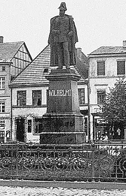 W XIX i w pierwszym 30-leciu XX w. powstały 3 pomniki i 1 kamień pamiątkowy. W 1896 r. na głównym placu rynkowym miasta usytuowano trzymetrowy pomnik ku czci cesarza Wilhelma I (niem.) Kaiser-Wilhelm I.-Denkmal[5]. Na cześć ofiarodawcy parku miejskiego, tj. Ottona von Putlitza postawiono pod koniec XIX w. obelisk ku jego czci (niem.) Otto von Putlitz-Denkmal[46][47][48]. W latach 20. XX w. natomiast powstały: dziesięciometrowy obelisk ku czci żołnierzy (niem.) Kriegerdenkmal oraz kamień pamiątkowy ku czci poległych w I wojnie światowej sportowców (niem.) Turner-Denkmal[50].