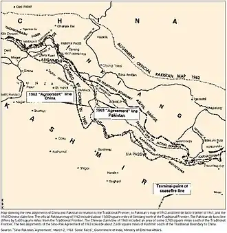 - ↑ Edward Frederick Knight, Where Three Empires Meet. (...), 1897, Cytat: „The Kanjutis often visit Yarkand, to them a magnificent place, and the Thum of Hunza has a jagir or grant of land, near that city – a recognition of the assistance Hunza gave to China during an insurrection in Turkestan in 1847.”.