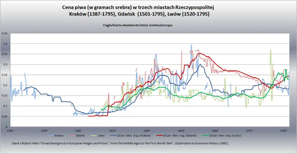 W stołecznym Krakowie rada miejska określała cenę piwa i regulowała pracę i wynagrodzenie piwowara i jego pomocników. Określała również kontyngenty na piwo importowane, najczęściej świdnickie. Rada miasta powoływała również mensuratores, czyli mierników, których zadaniem było odmierzanie odpowiednich ilości zboża, słodu i gotowego piwa[27]. Do zadań rady miejskiej należało też określanie kar dla nieuczciwych piwowarów, którzy w razie wykazania im nieuczciwości (oszustwa w ilości lub jakości piwa) otrzymywali zakaz wykonywania zawodu na okres pół roku, a w przypadku recydywy groziła im proskrypcja z miasta. Kary dotyczyły również szynkarzy, których częstym nadużyciem było dolewanie wody lub gorszego piwa. W Poznaniu taki proceder nazywano zalewki. Do czuwania nad szynkarzami i nakładania na nich kar rada wyznaczała tzw. affusores, których zadaniem była kontrola jakości sprzedawanego piwa.