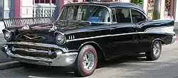 W Stanach Zjednoczonych silniki V8 stały się powszechne, coraz więcej aut było wyposażonych w automatyczną skrzynię biegów i klimatyzację[1]. W latach 50. XX w. amerykańskie samochody charakteryzowały się wyszukanym designem ze statecznikami i innymi detalami zainspirowanymi lotnictwem, a także chromowaniem[37]. Powstały wówczas takie modele jak Chevrolet Bel Air, Plymouth Fury, Chrysler New Yorker, Edsel Corsair czy V generacja Cadillac Series 62[37]. Ich szczyt przypadł na 1959 rok[37].