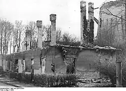 27 kwietnia 1945 roku młyn przy pałacu Sanssouci spłonął w wyniku związanych z II wojną światową walk pomiędzy wojskami niemieckimi a radzieckimi[11][12][10][7]. Przetrwała tylko murowana dolna część budowli, która przez następne dziesięciolecia coraz bardziej niszczała z powodu braku zabezpieczenia przed niekorzystnymi warunkami atmosferycznymi[13].