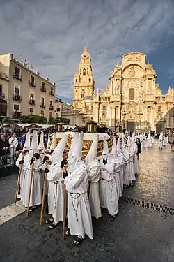 | Marzec/kwiecień | Wielki Tydzień | Semana Santa | Procesje zakapturzonych pokutników we wszystkich większych miastach Hiszpanii, począwszy od Niedzieli Palmowej aż do Niedzieli Wielkanocnej, z najsławniejszą procesją w Sewilli (patrz: Wielki Tydzień w Sewilli). |