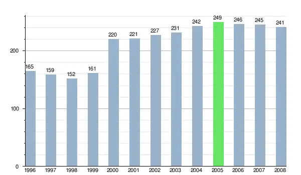 Zmiany liczby ludności w miejscowości Hnojné od 1996 roku.