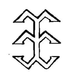 Na tarczy w polu czerwonym, trzy srebrne łękawice, połączone ze sobą w słup srebrną belką – gdzie górna ustawiona jak litera M, a środkowa i dolna jak litera W.